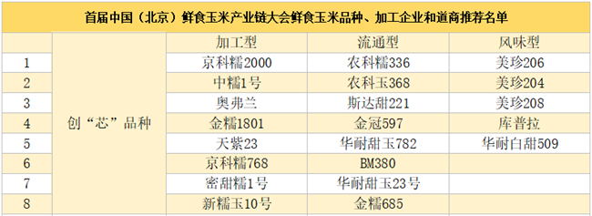 為發揮優秀樣本的示范作用,根據鮮食玉米銷售、加工情況,大會還評選出了21個鮮食玉米品種、9家鮮食玉米加工企業和7個鮮食玉米渠道商,并授予創“芯”品種、京“芯”加工企業、京“芯”渠道商的稱號。中國種子協會玉米分會會長、北京種業協會會長侯云鵬在會上宣讀了推介名單。