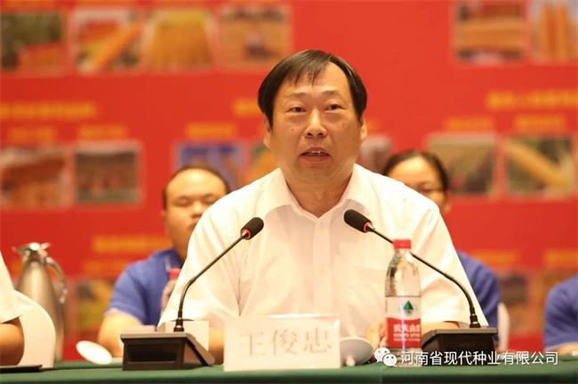 王俊忠介紹了當前種業企業面臨的形勢與任務,充分肯定了河南省現代種業有限公司近年來的工作成績。他指出:河南省現代種業有限公司是國家高新技術企業和育繁推一體化企業,同時也是國家玉米產業技術體系的重要成員單位,科研實力雄厚,且常年與中國農大、北京農科院等科研單位保持著穩定的合作關系,在品種培育、科研平臺建設、種業人才培育等方面具有較強優勢。在王麗紅董事長的帶領下,經過20多年的發展,產品研發和推廣能力逐年提升,營收也實現了快速增長,近兩年年均推廣面積均在一千萬畝以上,位居我省前列。