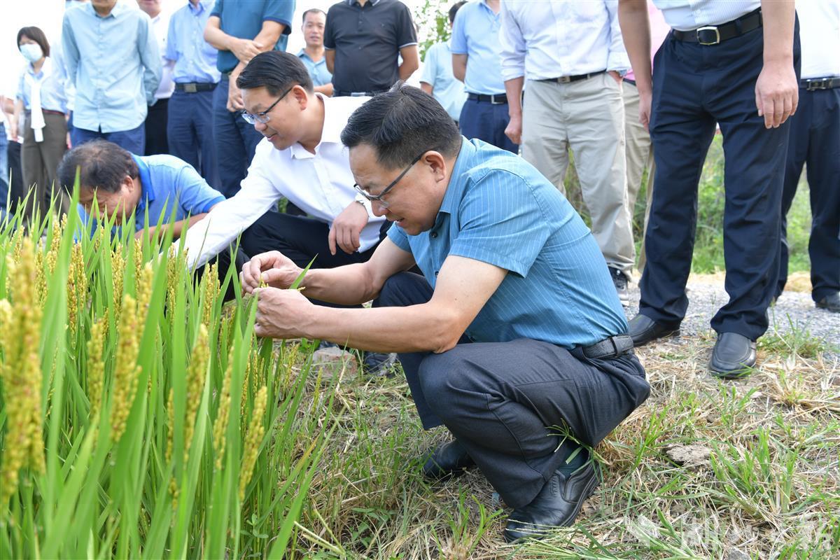 湖北日報訊(記者汪彤、通訊員孔劍、祝師元、馬磊)強農業,必先強種業。為貫徹落實種業振興系列決策部署,加快綠色、優質、高效水稻新品種選育創新與推廣應用,8月31日,全省種業創新推進會在仙桃市召開。60余個水稻新品種在仙桃市省級水稻新品種展示示范評價基地集中亮相,吸引各市、州、直管市和部分糧食主產縣(市、區)種子管理與推廣機構、種業龍頭企業、涉種科研院所代表近100人觀摩。這些新品種代表了當前我省水稻品種自主創新的最高水平,不但產量高,而且品質優、抗病性好,其推廣應用將助推我省糧食生產提質增效。