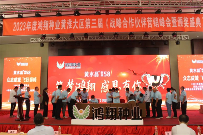8月31日,以“眾志成城,飛躍巔峰”為主題的2022-2023年度鴻翔種業黃淮大區第三屆戰略合作伙伴營銷峰會暨頒獎盛典在美麗的山東泰安肥城成功舉行。吉林省鴻翔農業集團鴻翔種業有限公司總經理賀偉,杭州瑞豐生物孫永政,河南省新鄉市農科院玉米所所長鄭秋道、副所長馬俊峰,吉林省鴻翔農業集團鴻翔種業有限公司黃淮大區總監孟劍,來自山東、河南、安徽等黃淮區域的合作伙伴共500余人參加了活動。