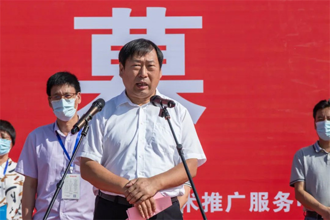 河南省農業農村廳黨組成員、副廳長王俊忠代表河南省農業農村廳和全省種業系統,向參與活動的各位專家和種業同仁表示熱烈的歡迎!他在講話中指出,糧安天下,種鑄基石,河南不僅是農業大省、也是種業大省,是我國種業科技創新和種業市場最具活力的省份,農作物育種創新能力居全國領先水平。他說,農作物新品種展示示范觀摩是品種審定后大面積種植前的重要環節,是向農民宣傳推廣優良新品種的重要手段,是引導農民看禾選種、科學用種的田間展臺,是科研育種單位展示最新育種成果、交流最新育種動態的信息平臺。優良品種通過展示得到很好的宣傳推廣應用,為河南乃至全國糧食豐收,扛穩糧食安全重任,作出重大貢獻。