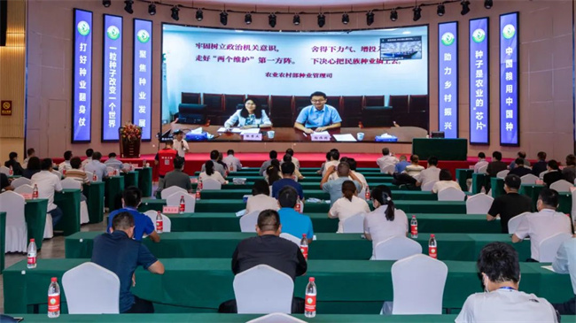 為展示推介突破性新品種,促進玉米品種更新換代,提升品種審定試驗水平,9月7日,由全國農業技術推廣服務中心主辦,國家生物育種產業創新中心、河南省種業發展中心、河南秋樂種業科技股份有限公司、種業商務網共同承辦的“2022年國家玉米新品種核心展示示范觀摩暨品種試驗培訓班”在河南新鄉成功舉辦。本屆大會通過線下+線上方式召開,截止發稿線上觀看人次達106萬,大會取得圓滿成功。