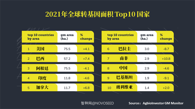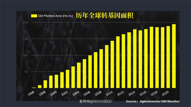 自 1996 年首次種植以來,轉基因作物的面積大幅增長。近年來,全球種植面積達到了相對成熟的水平,事實上在 2018 年和 2019 年陷入了兩年的下降。2021 年全球種植面積增加了 3.7%,這是由所有主要作物的面積增加所推動的。