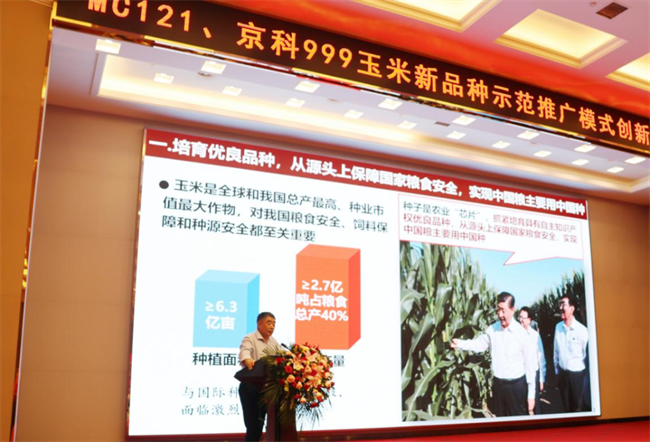 河南省種業發展中心在會上介(jie)紹了MC121-京科(ke)999示(shi)(shi)范展示(shi)(shi)情況,并表示(shi)(shi),要采取有力措(cuo)施推動這兩個玉米新品種大(da)規模(mo)產業化和(he)大(da)面(mian)積(ji)推廣應(ying)用。