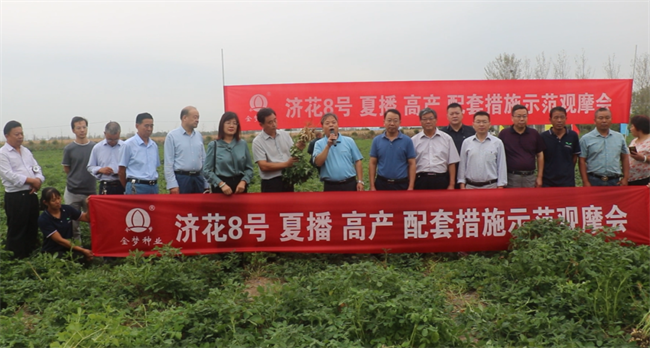 為展示夏播高油酸花生種植示范效果、交流高油酸花生生產經驗、推進高油酸花生產業發展,9月20日,河南金夢種業有限公司聯合中豫莊稼人花生專業合作社在唐河縣現代花生產業園召開高油酸花生新品種濟花8號示范觀摩會。