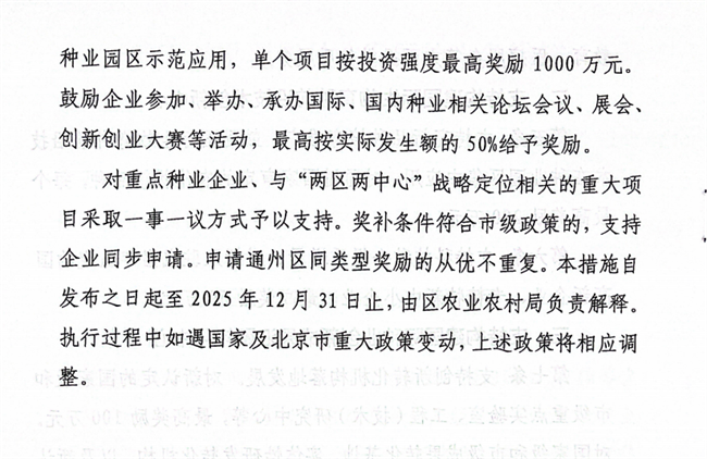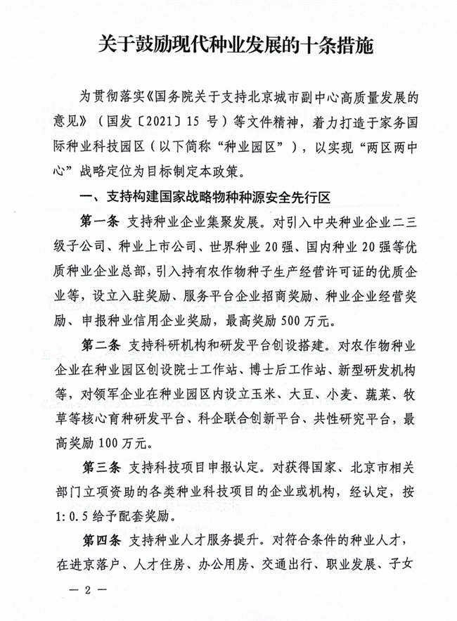 進一步發揮優勢、匯聚資源,今年8月,北京市通州區人民政府辦公室印發了《關于鼓勵現代種業發展十條措施》的通知,以專項政策支持強力推動現代種業發展。