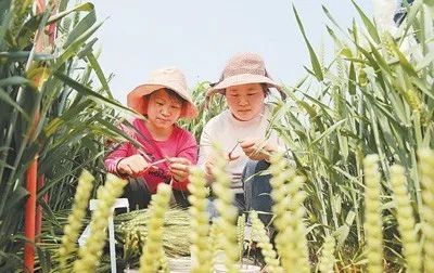 安徽省淮北市濉溪縣農業科研試驗站五鋪試驗基地,科研人員在進行小麥授粉雜交。目(mu)前,濉溪縣已(yi)建成50萬畝標準化(hua)小麥良種(zhong)繁育帶,每年向(xiang)全國輸出2億多斤小麥良種(zhong)。