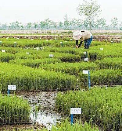 江蘇省宿遷市沭陽縣(xian)青伊湖(hu)鎮的江蘇歡騰農業水(shui)(shui)稻育種(zhong)基地(di),工作人員為不同(tong)的水(shui)(shui)稻秧苗插上標簽,進(jin)行“身份”識別。該(gai)基地(di)與中國科學院遺傳與發育生物學研究所合作,進(jin)行500多份雜交稻和常(chang)規稻的品種(zhong)比較試驗,擁有(you)自主(zhu)研發新品種(zhong)19個。