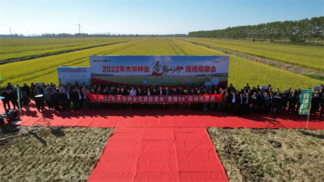 2022年10月12日,江蘇省大華種業集團有限公司遲熟中粳優質軟米新品種“香緣99”現場觀摩會在江蘇臨海農場隆重召開。