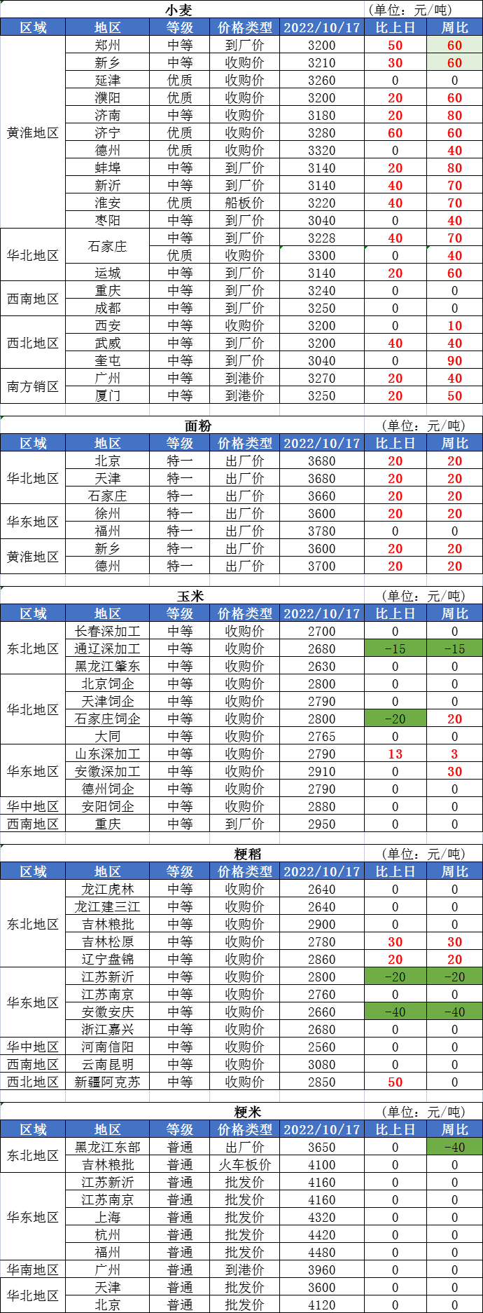 2、目前東北玉米價格逐漸呈現回落態勢,收割進度推進,潮糧上量逐漸增加。華北地區平穩趨強,一方面,前期降雨影響上量,廠家庫存不大,提價意愿較強;另一方面,隨天氣轉好新糧水分逐漸下降,基層挺價心較強,潮糧上量由南到北逐漸減少。