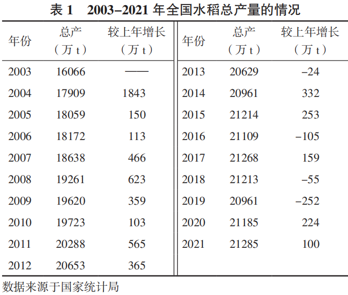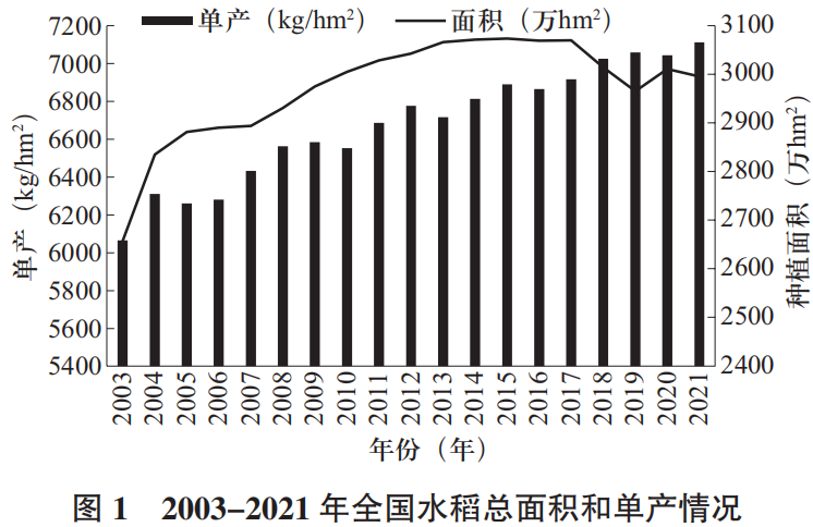 我國從2011年到2021年,水稻總產已連續11年穩定在2億t以上,為糧食安全作出了重要貢獻,滿足了60%人口的口糧需求,但受種植面積、品種、自然環境等的影響,水稻總產量持續增長難度較大。