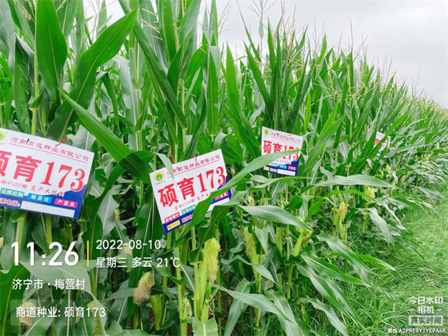 穩產高產。碩育173廣適性好,抗災能力強。多年大田種植,均表現出穩產高產等特點。一般平均畝產1437斤,增產潛力大,2020年最高畝產達2168斤,創當地夏播玉米最高記錄,2022年畝產仍然有超過2000斤。