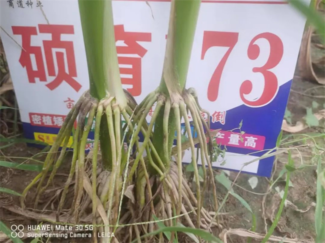 高抗倒伏。碩育173,株高250厘米左右,穗位90厘米左右比例適宜。株型緊湊,莖稈粗壯,彈性好,氣生根發達,抓地牢,抗倒折能力強。自市場推廣以來,經歷多次大風和強降雨等自然災害的情況下,無倒折情況發生,表現出優秀的抗倒折能力。