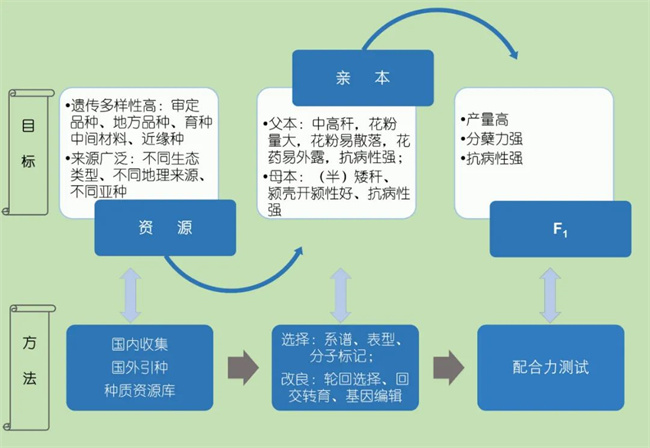 圖6 小麥雜種優勢群親本選擇與改良方向及實現方法(引自 朱獻文等 2022. 科學通報 “雜交小麥育種與生產”專輯)