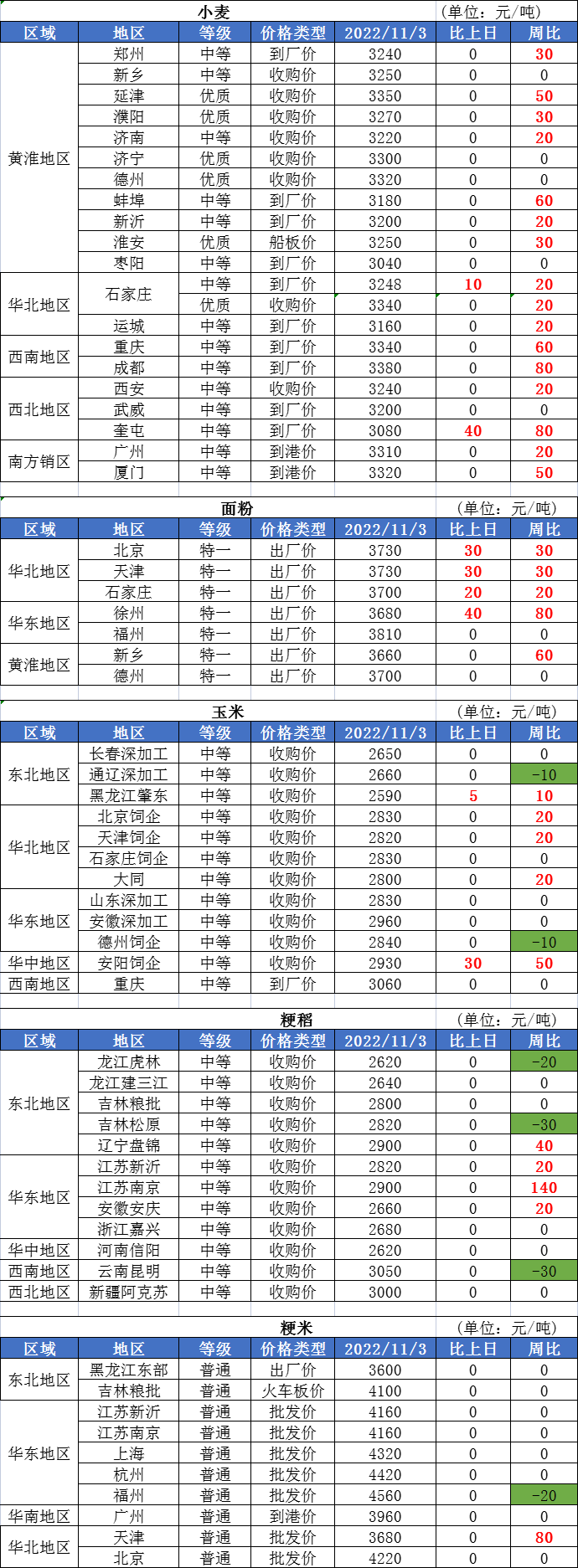 1、11月2日,新疆臨儲小麥拍賣共投放40476噸,全部成交。其中白小麥18664噸,成交均價2956元/噸;高寒白小麥16506噸,成交均價2683元/噸;混合麥5306噸,成交均價3097元/噸。