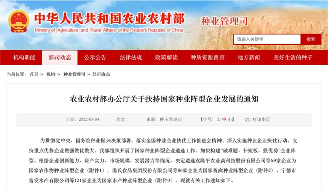 今年 8 月,在中國首份“十四五”生物經濟發展規劃出臺后,農業農村部又印發《關于扶持國家種業陣型企業發展的通知》,明確提出要遴選陣型企業重點扶優,支持、鼓勵、推動科研單位、金融 機構、種業基地與陣型企業對接。