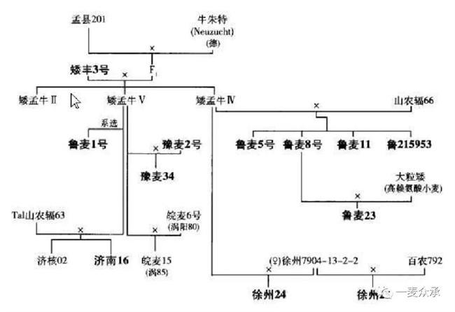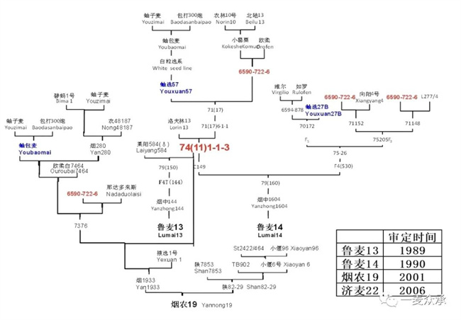 一、蚰子麥-蚰包麥-煙農74(11)-魯麥14-濟麥22及良星系列高產穩產改良線