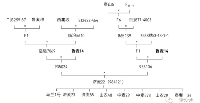 圖2 濟麥22系譜圖(劉建軍研究員,郭軍博士2022-4-27值日文章)