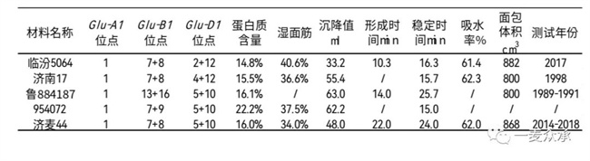 表2 部分優質小麥的高分子量麥谷蛋白亞基及品質相關指標