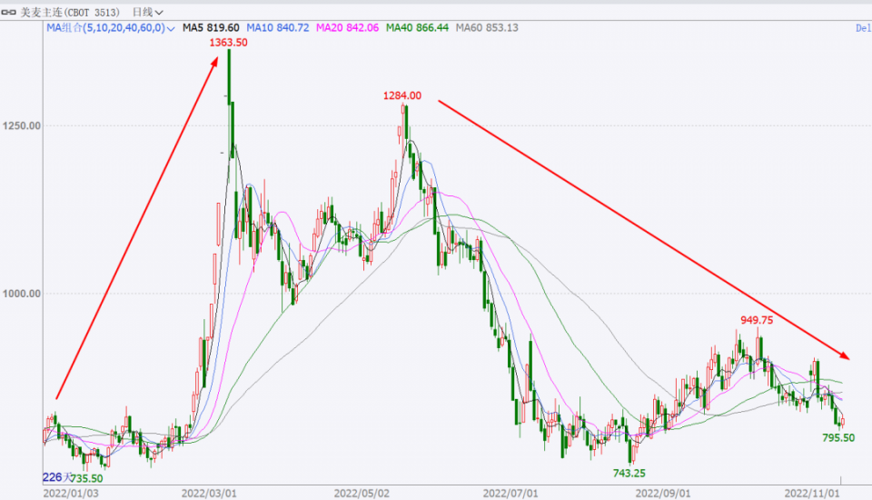在(zai)瞬息(xi)萬變(bian)的國際(ji)市場(chang)中,全球(qiu)谷物風向標CBOT小麥價格今(jin)年大(da)起(qi)大(da)落。在(zai)俄(e)烏沖突爆發后,CBOT小麥期貨價格在(zai)3月(yue)創出歷史新(xin)高,兩周內漲(zhang)幅曾(ceng)超過(guo)60%。