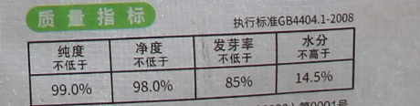 三看種子質量指標四項(純度、凈度、發芽率、水分)、凈含量。