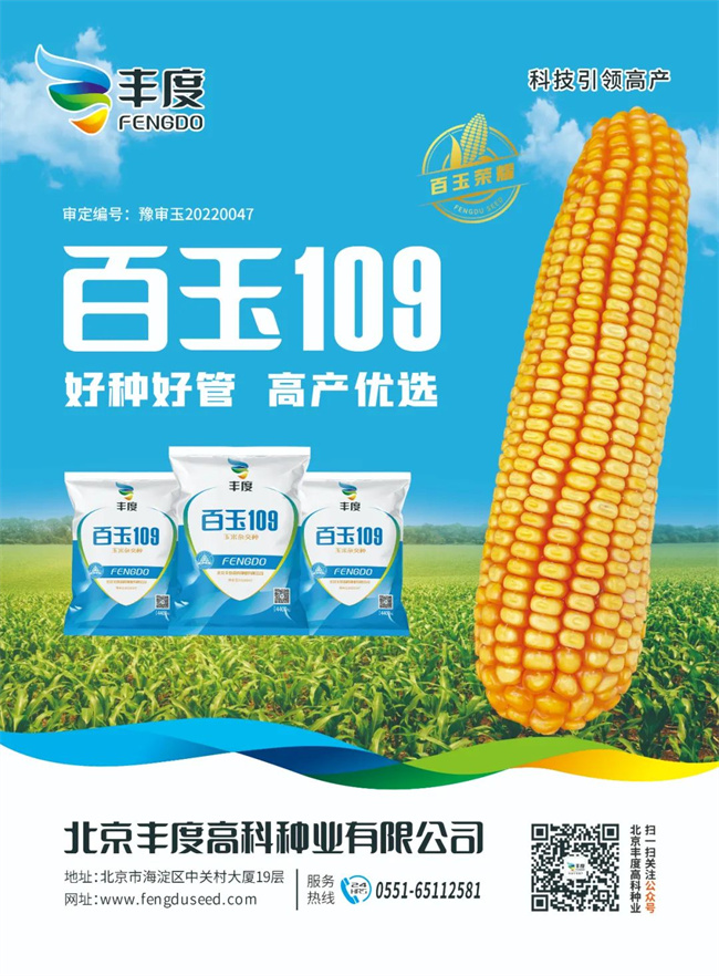 百玉109是河南科技學院陳士林老師選育的突破性品種,北京豐度高科種業有限公司獲得全國獨家開發的安全型玉米新品種。近年來,黃淮海地區異常氣候脅迫趨于常態化,這給大田生產與糧食增收帶來巨大考驗。穩定性好、安全系數高的玉米品種,不僅是種業經營者的強大底盤,更是糧食豐收的保障,也越來越受到廣大農戶的青睞。