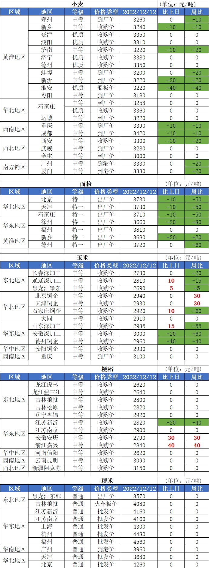 1、隨著各地管控措施陸續放寬,物流通暢,小麥市場供需情況發生變化,自12月初麥價一路小幅下滑,近日趨于穩定,主產區小麥上市量與需求量趨于平衡,逐步進入僵持狀態。