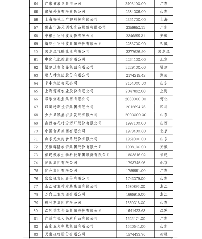 本活動參照國際通行評價辦法,由企業按照要求進行申報或采用公開數據,參考利潤和企業信譽等數據,依據2021年農業企業營業收入排序產生,現予公示。