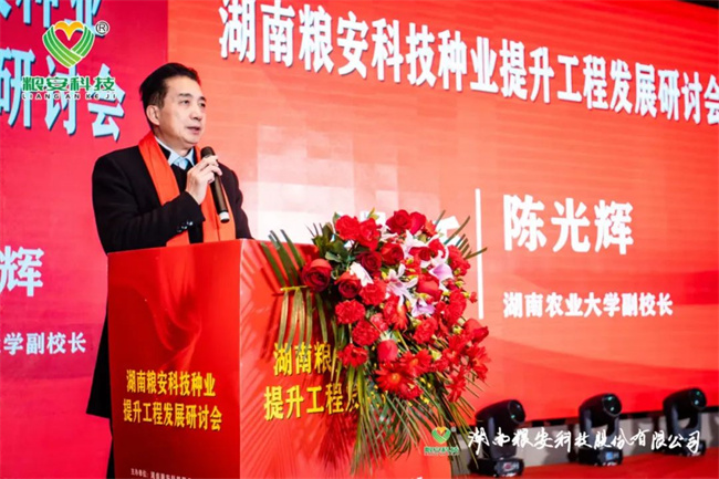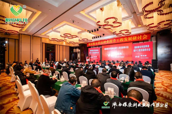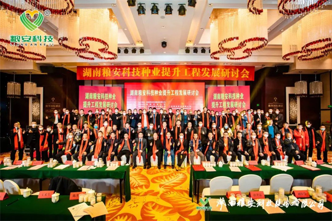 歲末年底同歡慶,幸福前程步步高。12月25日“湖南糧安科技種業提升工程發展研討會”在湖南長沙隆重舉行。本屆大會由湖南糧安科技主辦,湖南農業大學技術支持,廣西綠海種業、廣東粵良種業、上海天谷生物、廣東鮮美種苗聯合協辦。來自湖南農業大學、上海市農業生物基因中心等農業科研院校單位專家,全國多家種業、米業、酒業公司負責人,華南稻區種子核心經銷商代表以及南方農村報農財寶典、種業商務網、種子快訊雜志社多家媒體代表近200人參加了本次研討會。