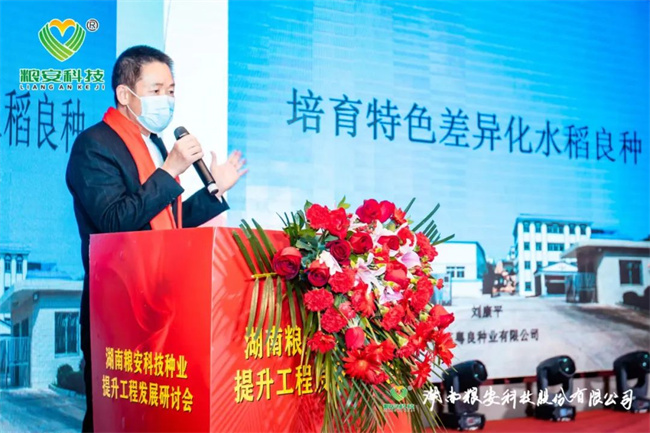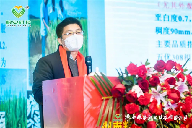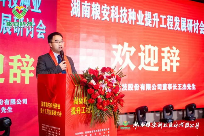 公司董事長王杰在致辭上說,湖南糧安科技股份有限公司成立于2015年,在“雜交水稻野敗發現者”李必湖教授為首席科學家的帶領下,已經成為湖南省較具競爭力的現代種業企業之一。以湖南農業大學博士生導師雷東陽教授為科學院長的研發團隊,這些年來一步一個腳印地走、穩扎穩打地干、實實在在地拼,公司先后獲得了中國種子行業信用評價AAA級企業、國家高新技術企業、湖南省農業產業化龍頭企業、湖南省主要農作物種子生產經營許可BCD證等資質及榮譽。2021年8月公司在湖南省股權交易所成功掛牌,股權代碼為600401HN。