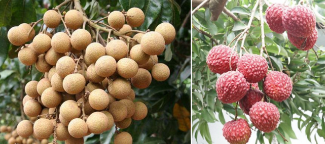 圖左為母本“石硤龍眼”,圖右為父本“紫娘喜荔枝”。