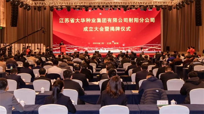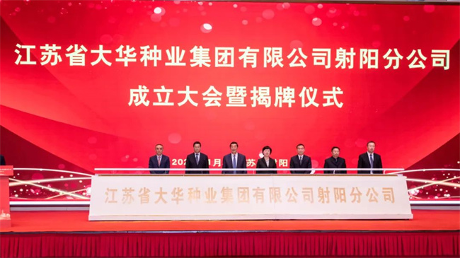 1月12日,江蘇省大華種業集團有限公司射陽分公司成立大會暨揭牌儀式,在有“天下糧倉”“濕地之都”美譽的江蘇鹽城射陽隆重舉行。江蘇省農墾集團有限公司總經理、黨委副書記,江蘇省農墾農業發展股份有限公司董事長胡兆輝,中共射陽縣委書記吳岡玉、江蘇省農墾集團有限公司副總經理、黨委委員,江蘇省農墾農業發展股份有限公司黨委書記王立新、江蘇省種子管理站副站長俞瑋、江蘇省農墾農業發展股份有限公司總裁、黨委副書記朱亞東、揚州市農業科學院院長李愛宏、蘇墾農發副總裁,大華種業黨委書記,董事長丁濤、大華種業集團總經理陳付祥、射陽縣人大、江蘇省農墾集團相關部門、蘇墾農發公司總部、射陽縣農業農村局有關領導,江蘇農墾鹽城地區農場公司有關領導,蘇墾農發鹽城地區分子公司有關領導,蘇皖兩地種業企業代表,大華種業合作企業、客戶和媒體代表,以及大華種業及其分子公司領導200余人參加本次盛會,會議由大華種業集團總經理陳付祥主持。