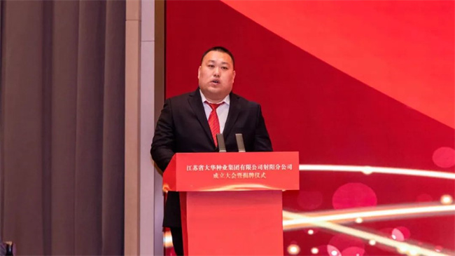 江蘇省種子管理站副站長俞瑋說道:江蘇省大華種業集團有限公司歷經三十年風雨洗禮,由小到大,由弱到強,聚力建設現代種業產業體系,聚焦品種研發、產學研合作、質量控制、資源整合、經營機制創新;公司保持健康穩定發展,現已成長為江蘇規模最大、效益最好、行業地位最高的種業龍頭企業,成為全國種業三強企業;公司為保障江蘇種源安全和糧食安全,推動江蘇種業整體發展、提高江蘇在全國種業界的地位做出了突出貢獻,是江蘇種業當之無愧的一面旗幟。大華種業順勢而為,聚焦品種強核,整合優勢資源,在鹽城射陽這片江蘇種業高地成立新的分公司,是推動現代種業高質量發展的重大舉措,走在了江蘇種業的前列,發揮了行業龍頭的示范帶頭作用。省種子管理站全力支持大華種業射陽分公司發展。相信大華種業射陽分公司一定能夠茁壯成長,創造輝煌,為我省乃至全國種業振興不斷做出新的、更大的貢獻!