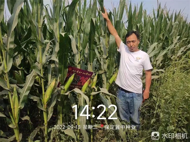 在2020~2022連續三年黃淮海不少區域出現大風大雨天氣,很多玉米出現大范圍大面積倒伏,名鼎26沒有倒伏,原因何在?名鼎26株高矮穗位低,伸手摸到稍,穗位不及腰,株高平均258厘米,穗位90厘米,根系發達,第一第二節間短,莖稈粗,彈性好,大風不倒,高抗倒伏!抗倒才能更穩產,抗倒才能更高產。