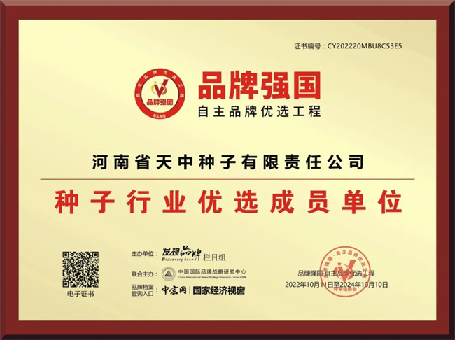 河南省天中種子有限責任公司是一家集科研、生產、加工、銷售、服務于一體的現代化股份制高新種子企業。注冊資金3000萬元,占地30余畝。公司員工36人,其中農藝師11人,市拔尖人才1人,國務院特殊津貼專家1人。公司擁有占地300余畝的天中種業園和天中種業新品種研發中心。公司自成立以來,多次受到省市領導和上級主管部門的表彰。連續多年被評為“誠信單位”、“農業產業化市重點龍頭企業”。