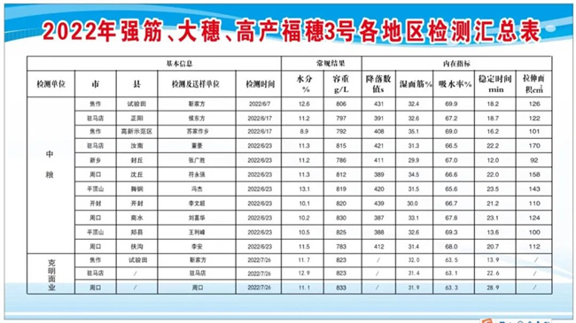 繼承了師欒02-1的優良特點,籽粒卵圓,硬質、飽滿,商品性好,易識別;二年蛋白質16.5%/15.2%,濕面筋37.4%/33.5%,面筋指數86/89,吸水率62%/62%,穩定時間21 min /12.5min,拉伸面積166 cm2/109cm2,延伸性188 mm /174mm,最大抗延阻力481 EU /572 EU。屬于一級強筋小麥,目前由河南省農業產業化重點龍頭企業懷川種業獨家推廣,中糧集團及各大面粉企業定單高價回收,確保種植增產增效。