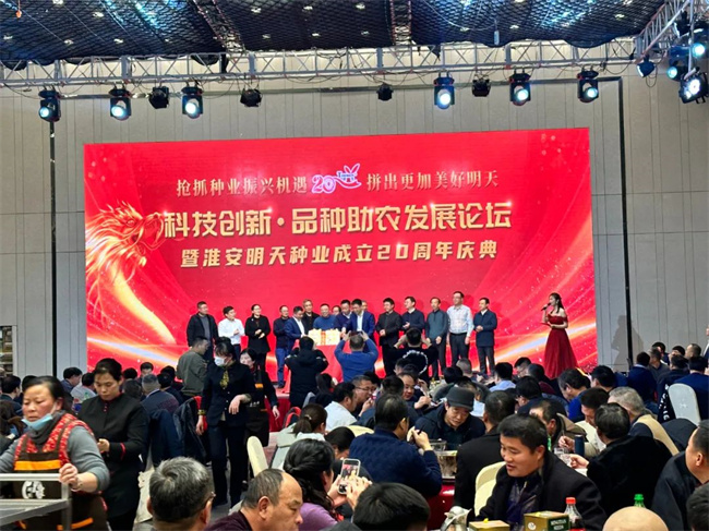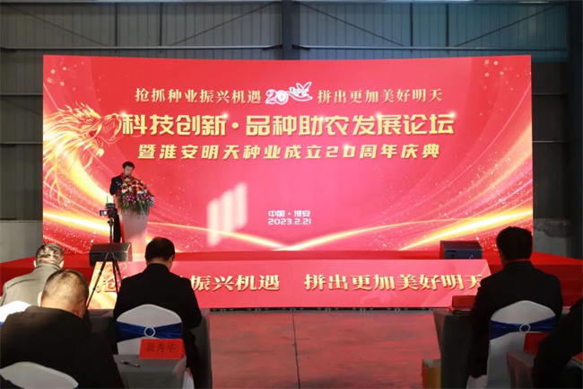 2023年2月21日,明天種業“科技創新·品種助農”發展論壇暨淮安明天種業成立20周年慶典活動在淮安隆重舉行。江蘇省種子管理站、江蘇省農技推廣總站、淮安市人大、淮安市農科院、淮安市農業農村局、揚州市農科院、江蘇省農科院等有關單位領導專家及合作伙伴、生產單位、媒體代表參加本次盛會。