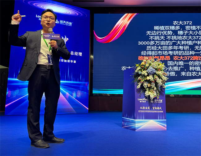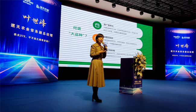 最后,巡天農業常務副總經理葉世峰的主題報告——《農大372,千萬畝之路有多遠》將本次會議推向了高潮。葉總在報告中通過農大372諸多桂冠加身的行業榮譽,逐年迭代升級的產品質量,持續營銷創新的服務理念,以及面對多年訴訟和三年疫情等重重坎坷依舊銷量年年增長的推廣業績等層層入里的深度剖析,讓我們更加直觀地認識到農大372“大品種”的實力和“千萬畝”的潛力!