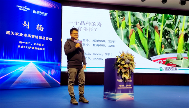 巡天農業玉米事業部總經理裴曉凱以《擁抱時代變化,感恩一路有你》為題,向與會嘉賓詳細講解了巡天玉米推廣服務營銷體系。他從種業發展特性分析、品種缺點缺陷剖析、國家政策支持傾斜、產品價值深度挖掘、種業新媒體運營、全新售后服務體系建立等八個方面,為大家深入講解了面對中國種業時代變化,如何破局和突圍的營銷創新思路。