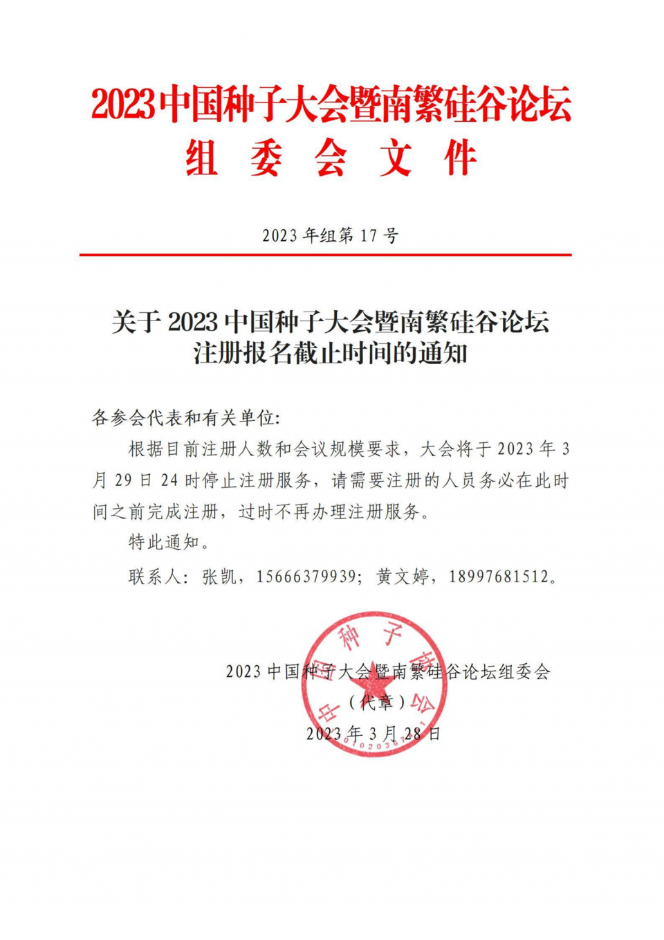 關于2023中國種子大會暨南繁硅谷論壇注冊報名截止時間的通知