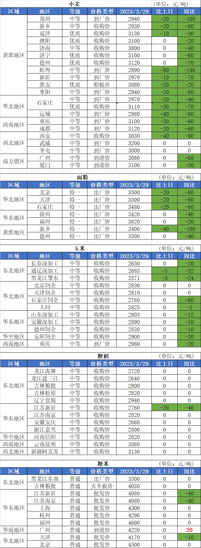 1、3月29日,最低收購價小麥競價銷售共投放98418噸,全部成交,最低成交價2470元/噸,最高成交價2760元/噸,均價2679元/噸,較上周降低98元/噸。