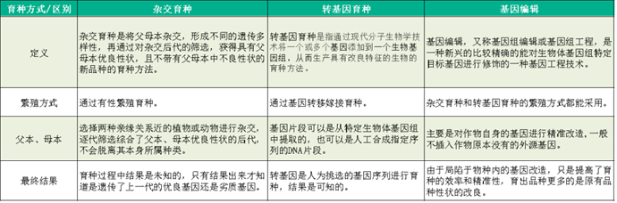 圖:雜交育種、轉基因育種和基因編輯育種的區別
