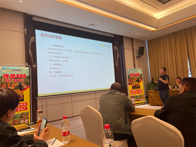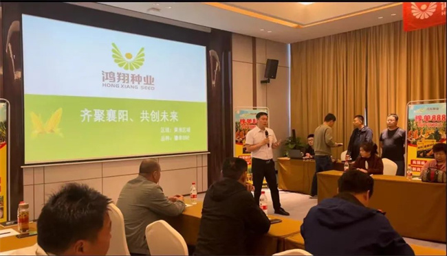 鴻翔種業黃淮大區總監孟劍從黃淮市場種業形勢講到市場破局與提升,從鴻翔種業的主要產品講到市場的嚴加管控。最后,他號召廣大合作伙伴,上下齊心,統一思想,充分發揮豫單888品種優勢和鴻翔品牌效應,在黃淮大地上再創佳績。