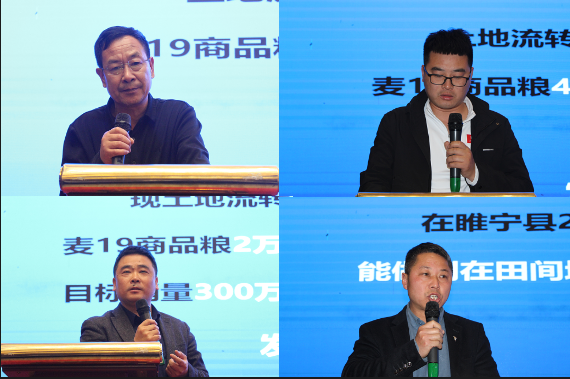 ▲一排左一柘城縣鑫新糧油購銷有限公司史總,一排右一淮北成睿種業有限公司王總,二排左一宿州市一然農業托管服務有限公司李總,二排右一江蘇睢寧瑞興農資有限公司王總(以上為谷神麥19優秀合作伙伴交流分享)