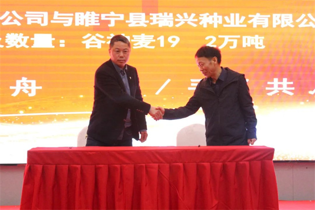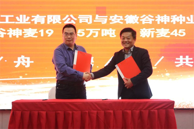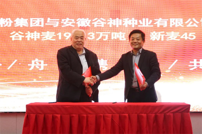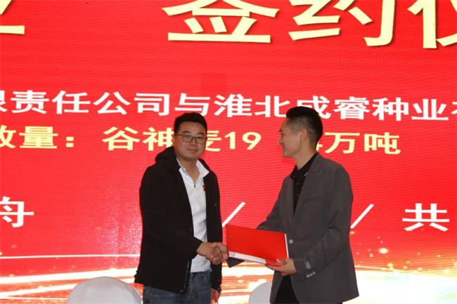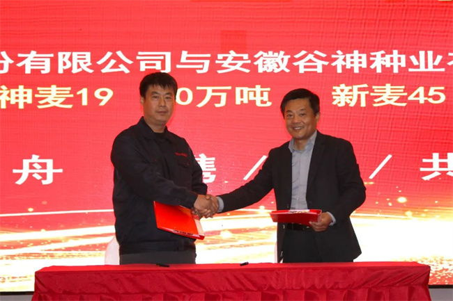 面粉廠、糧貿商合作代表分別作交流感言。對谷神麥19和新麥45的品質給予高度認可和贊揚,并表示,將進一步深化與谷神種業緊密合作,共創優質強筋小麥產業美好未來。會上,雙方舉行簽約儀式,新麥45認購7萬噸,谷神麥19認購39萬噸,謀劃產業持續健康穩定發展。