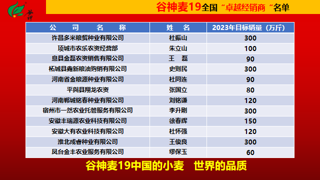 谷神麥19和新麥45優秀合作伙伴分別做交流發言。他們一致認為,谷神麥19和新麥45優秀表現,谷神種業誠實守信、質量把控嚴、產品線豐富,必將為雙方創造更大財富充滿信心!相信,攜手谷神走,永遠不迷路!谷神種業對谷神麥19和新麥45推廣應用作出突出貢獻的優秀合作伙伴舉行盛大的“卓越經銷商”授牌儀式。