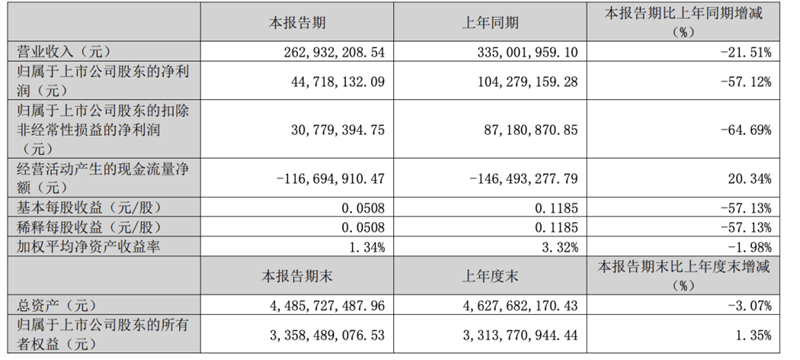 近日,登海種(zhong)業(ye)發布一季度業(ye)績公告(gao)稱,2023年第(di)一季度營收(shou)約(yue)2.63億元,同比(bi)減(jian)(jian)少21.51%;歸屬于上市公司(si)股東的凈利潤約(yue)4472萬元,同比(bi)減(jian)(jian)少57.12%;基本每股收(shou)益0.0508元,同比(bi)減(jian)(jian)少57.13%。