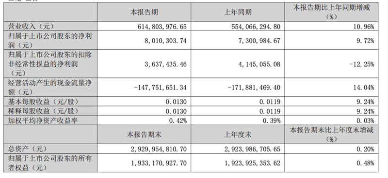 豐(feng)樂種業(ye)發布(bu)一季度(du)業(ye)績公告稱,2023年第一季度(du)營收約(yue)6.15億元,同比增(zeng)加(jia)10.96%;歸屬于上市(shi)公司股東的(de)凈利潤約(yue)801萬元,同比增(zeng)加(jia)9.72%;基本每股收益(yi)0.013元,同比增(zeng)加(jia)9.24%。