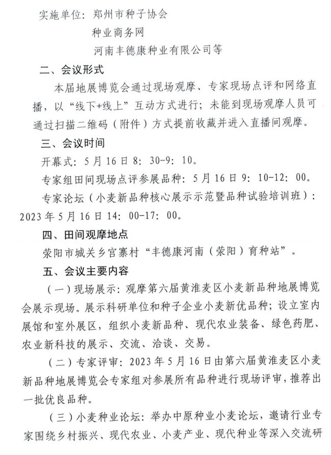 關于舉辦2023年第六屆黃淮麥區小麥新品種地展博覽會的通知