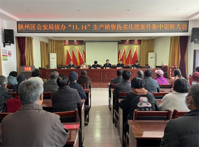 為震懾制售假劣農資違法行為,切實維護農民群眾合法權益,日前,一場熱鬧非凡的退贓大會在陜州區西張村鎮召開。該大會由三門峽市陜州區公安局主辦,三門峽市農業綜合行政執法支隊、陜州區西張村鎮人民政府等單位參與,以及西張村鎮10個村村支書、48名受害人等60余人參加了會議。工作人員現場將追回的48戶受害農戶受騙資金全部返還,受到了群眾的一致好評。在大會上,執法支隊負責人向群眾講解了“農業綜合行政執法隊伍到底是管什么”,并提醒群眾在購買農資時,提高防騙意識,謹防上當受騙。